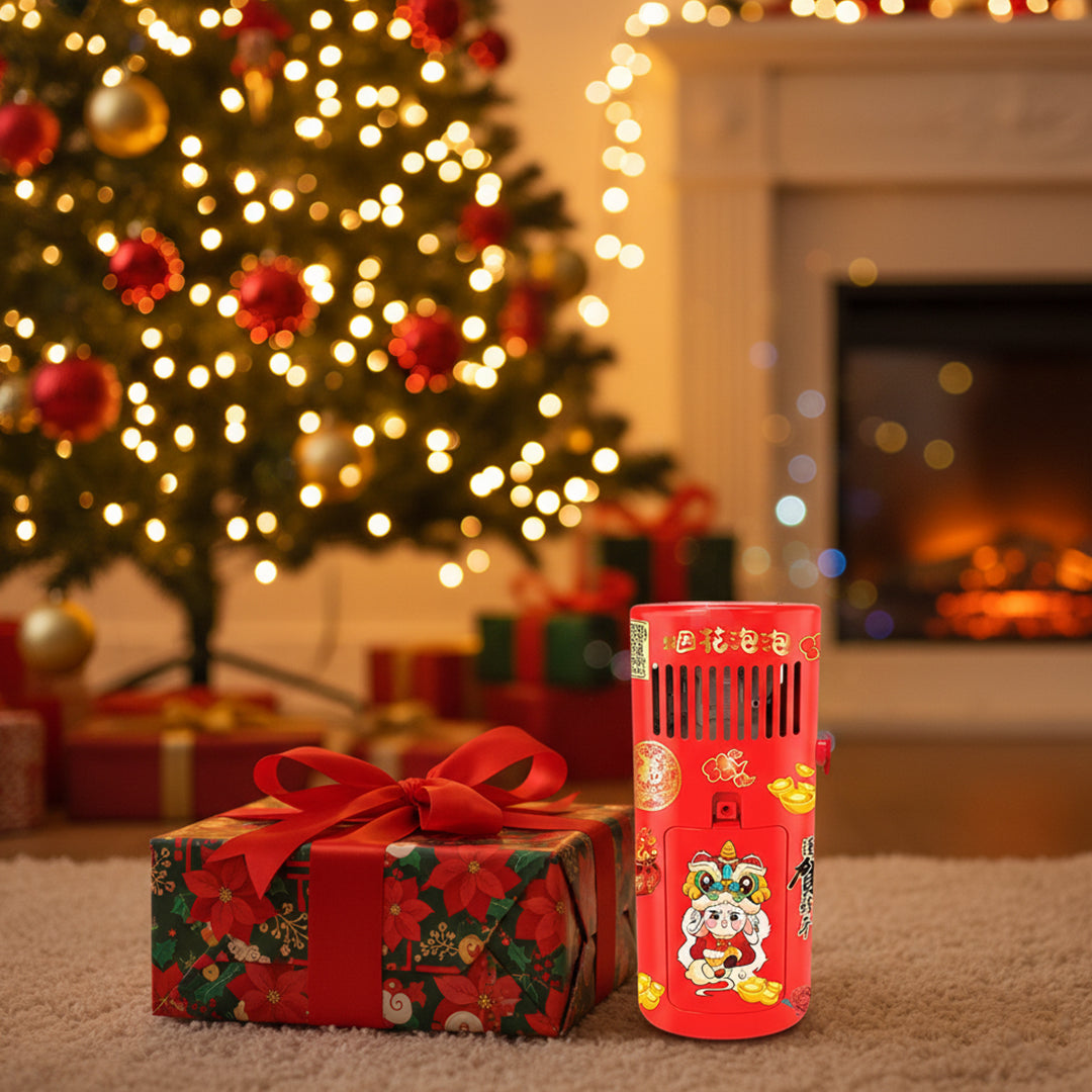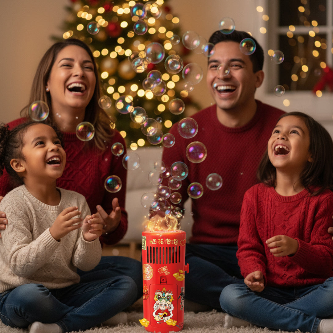 La máquina llena el espacio de miles de burbujas luminosas que crean una atmósfera mágica al instante. Es el detalle perfecto para transformar cualquier reunión navideña en algo inolvidable, sin esfuerzo y sin decorar de más.