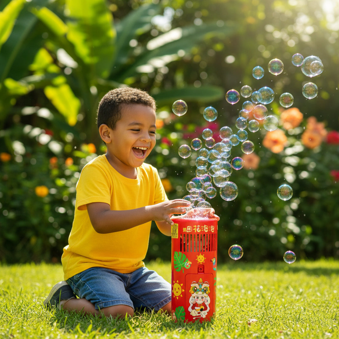 Imita el sonido de los cohetes, pero en lugar de fuego lanza burbujas y luces