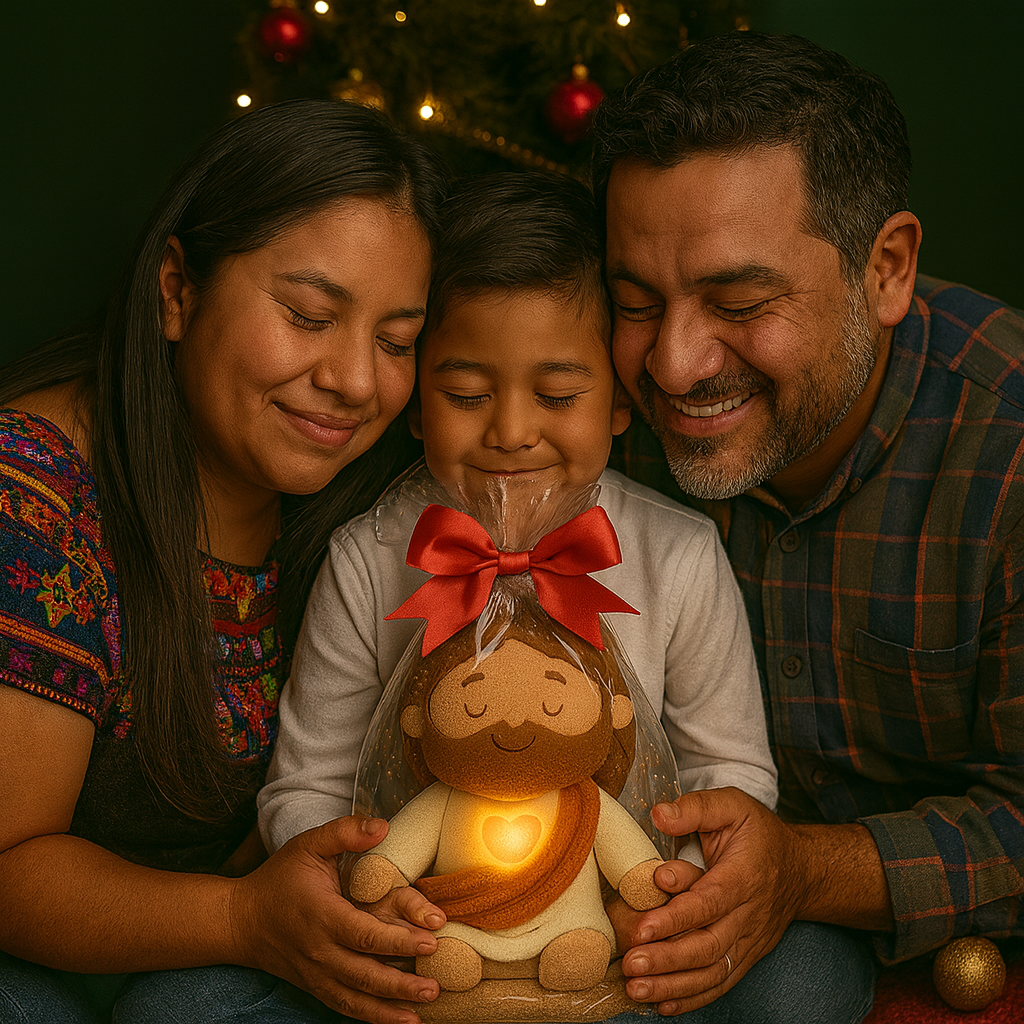 Un abrazo suave que simula respiración, tiene luz cálida y música relajante para crear un ambiente de calma en casa. ✨🙏